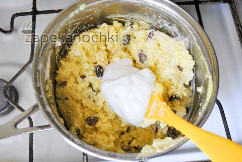 - Ввести взбитые желтки, перемешать и убрать с огня.