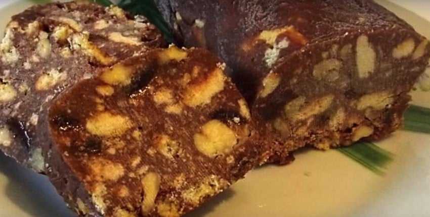 Шоколадный рулет «Колбаска» без выпечки из печенья со сливочным маслом