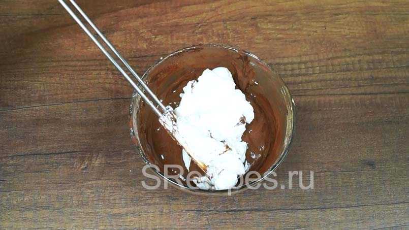 Добавляем частями оставшиеся взбитые белки и очень хорошо, но аккуратно перемешиваем.