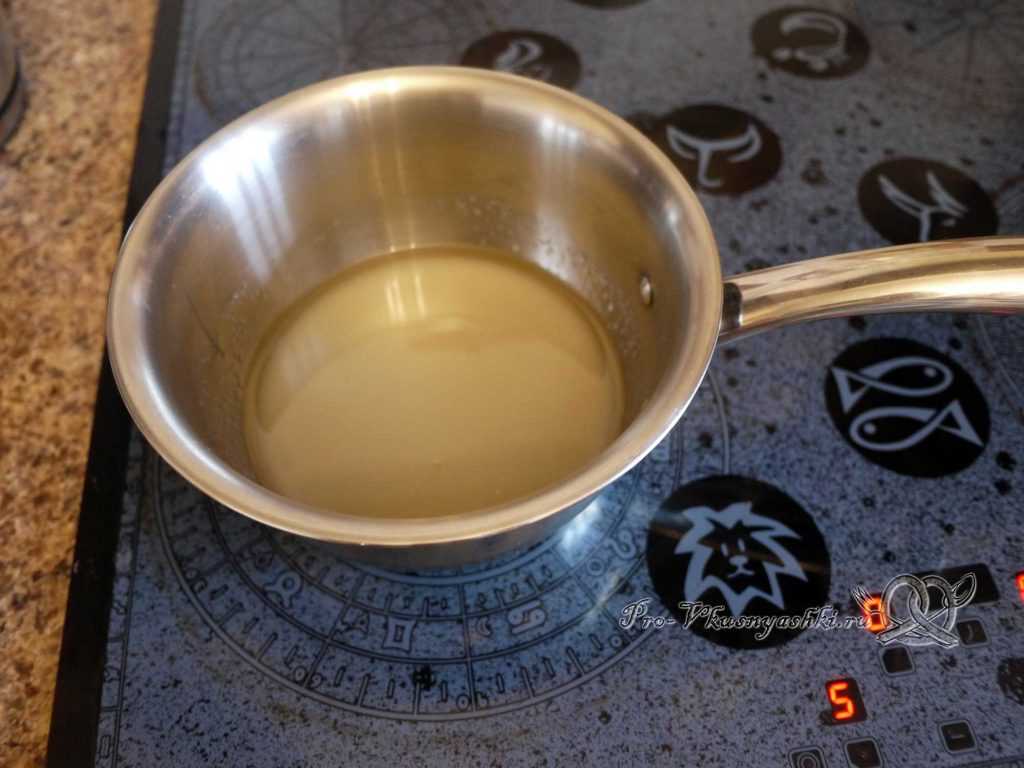 5.Когда все молоко будет введено, поставьте сотейник на огонь. Варите на огне ниже среднего, постоянно помешивая, до загустения. А это произойдет достаточно быстро, минуты за три.