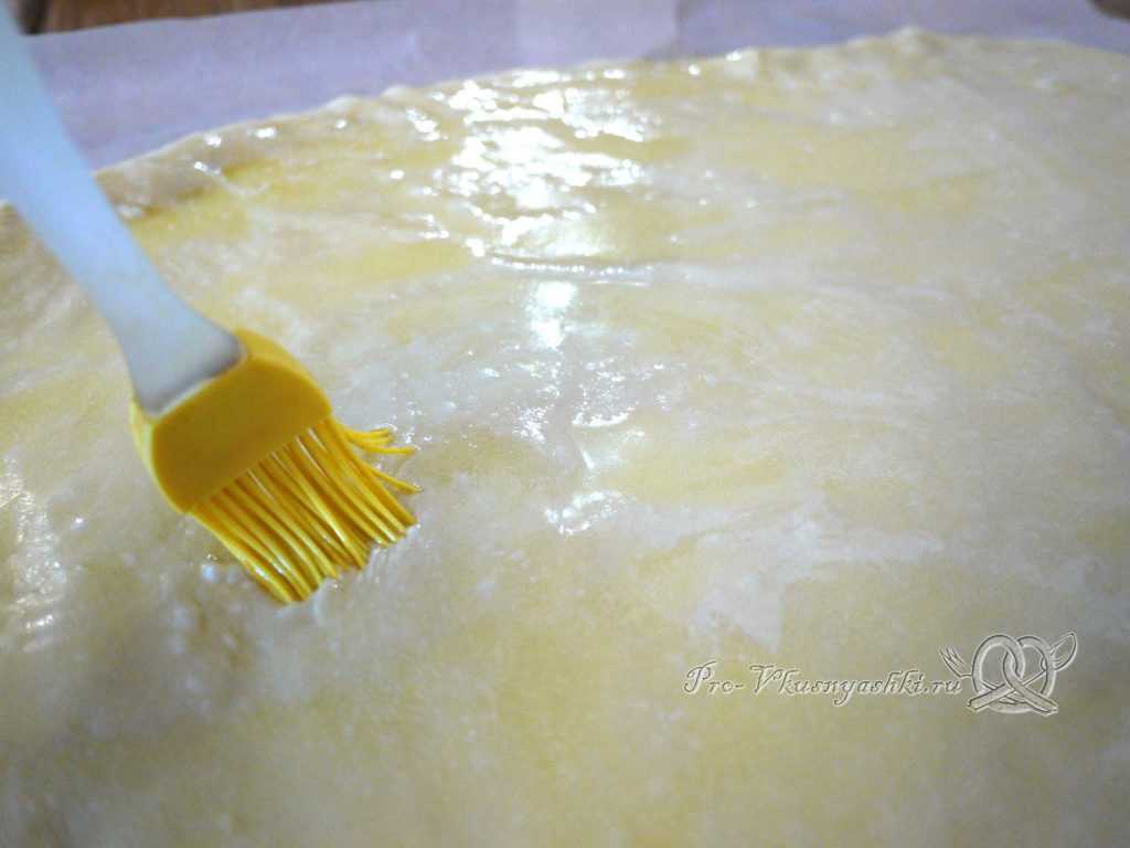 Для тех, кто не умеет самостоятельно готовить тесто подойдет вариация из готового слоеного дрожжевого теста.