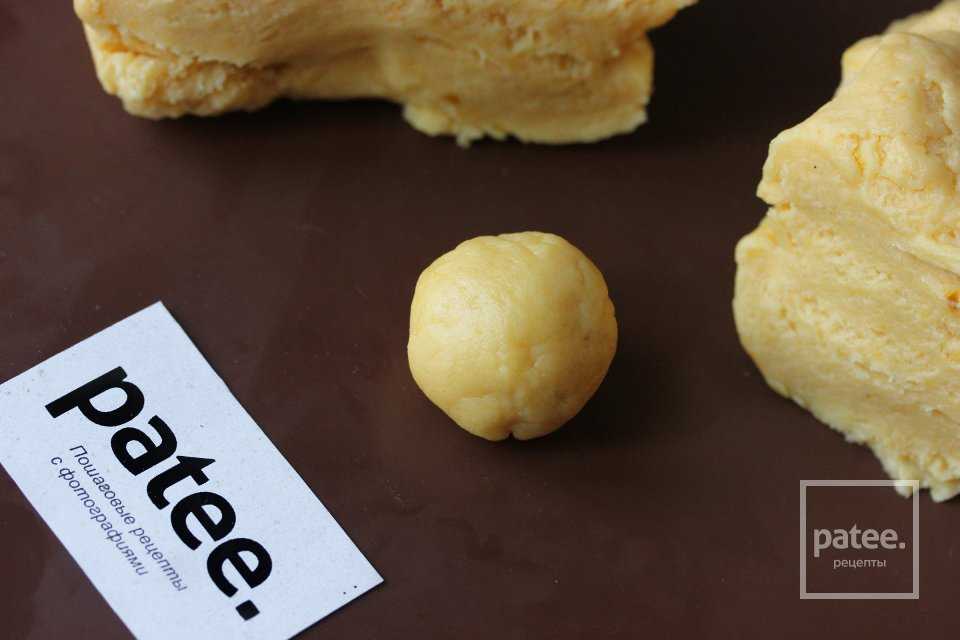 От теста отщипываем небольшой кусочек размером с орех и формируем из него шарик.