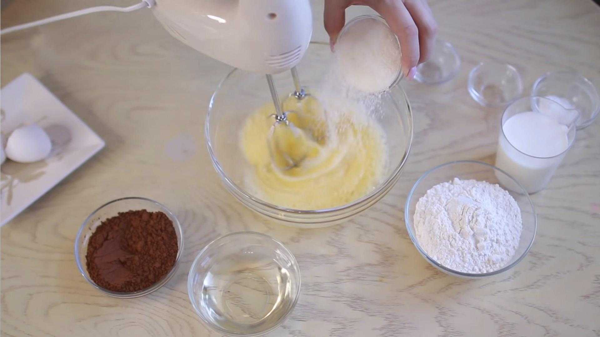 В миске или чаше кухонного комбайна электрическим или ручным миксером взбейте масло и сахар до легкой пышности (около 3 минут).