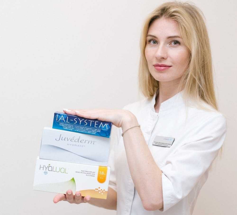 Врач использует современные косметологические средства на базе гиалуроновой кислоты. Препарат подбирают индивидуально в правильной концентрации после изучения типа, состояния кожи. Это оптимально для восстановления физиологических параметров и обменных процессов.