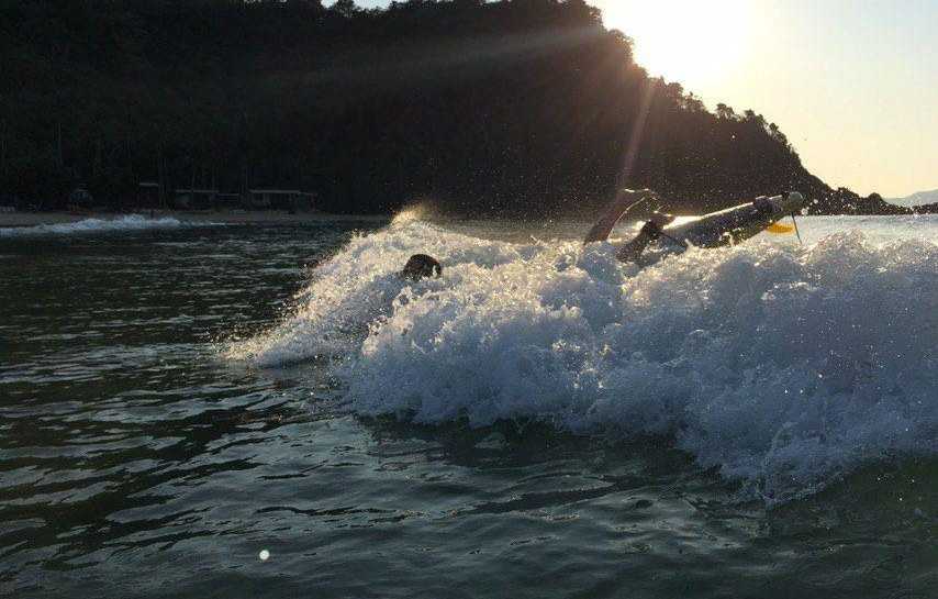 Самое уязвимое место в серфинге — это момент прохождения прибойных волн с доской. Потому что волны уже есть, а глубины еще нет. И при малейшем замешательстве серфера ласковые белые барашки задорно размажут его о дно и добьют его же доской. А потом вернут ее и добьют еще раз.