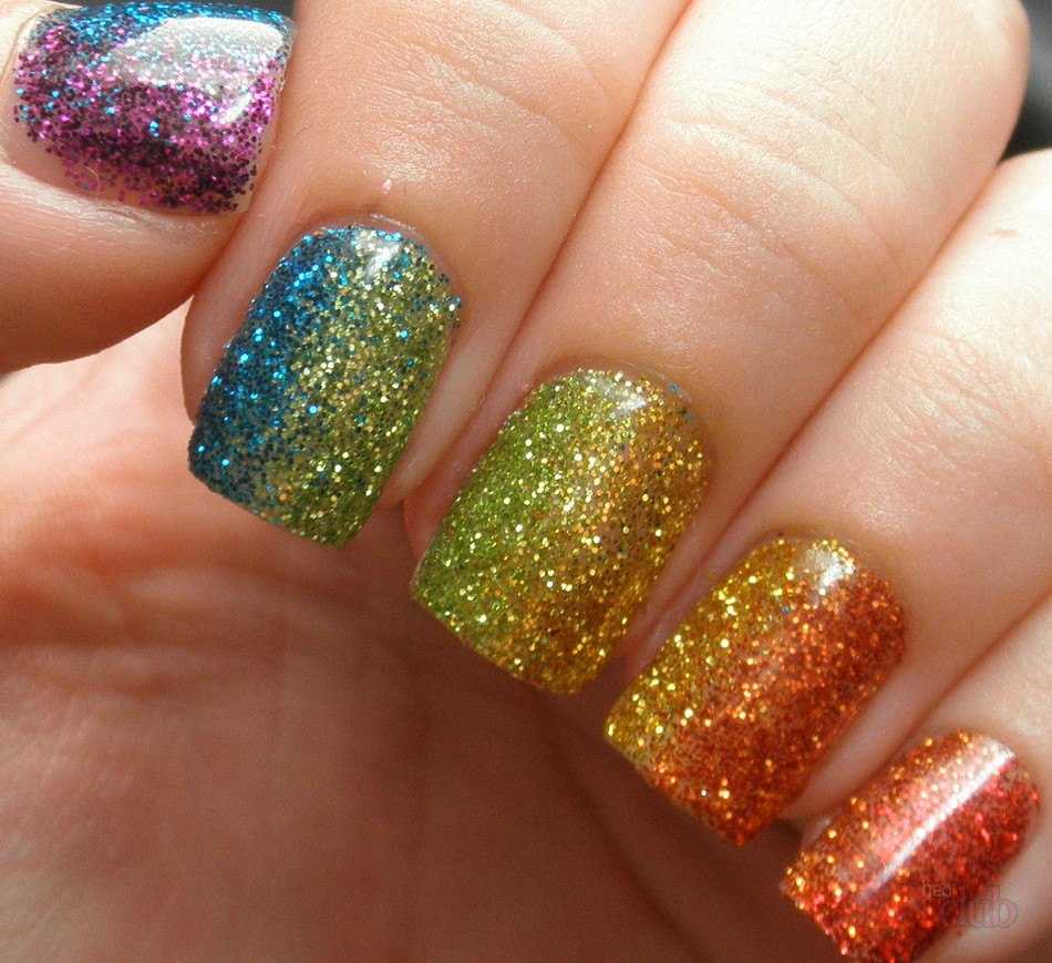 Глиттер на длинных и коротких ногтях