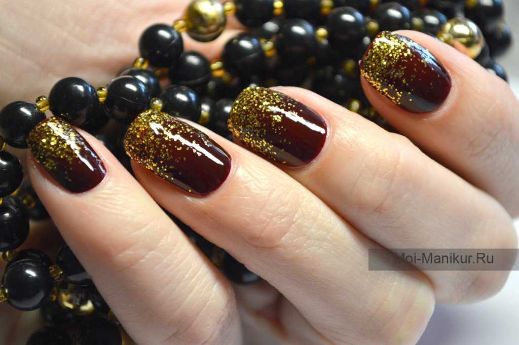 Омбре — идеально подойдет для новогоднего маникюра с глиттером. Использовать можно несколько оттенков глиттера, которые обеспечат плавный переход градиента.