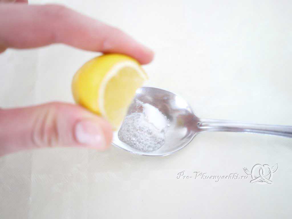 Соду (1/4 ч.л) нейтрализуем лимонным соком (1 ч.л) или несколькими каплями 6 % уксуса. Вводим ее в масляную массу.