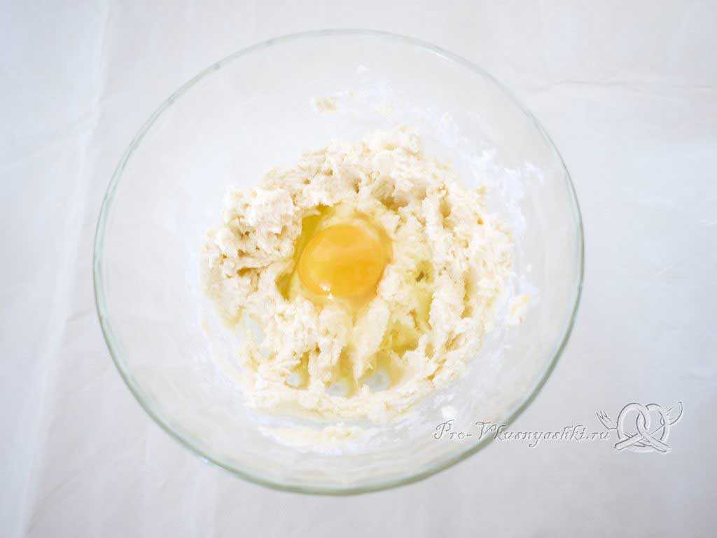 В миску добавляем яйцо (можно только желток) и перемешиваем (лучше с помощью миксера).