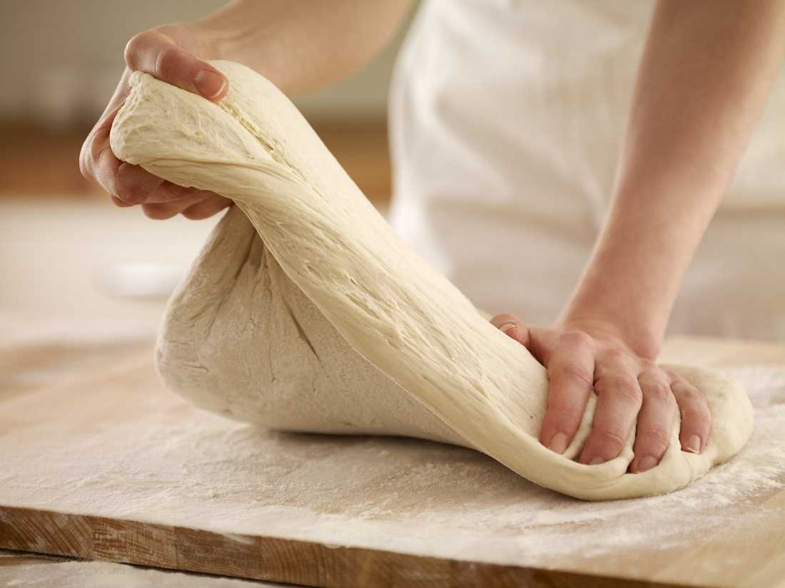 Тесто должно получиться матовым, мягким и не липнуть к рукам. Если тесто жидковатое, добавьте оставшуюся муку. В противном случае используйте остатки только для припыления.