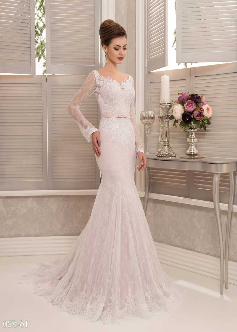 Классическая модель свадебного платья дополнена вариациями в виде платья-карандаш и платья-русалка. Классический признак – приталенный силуэт с закрытыми плечами. Платье может быть целиком пошито из кружевной ткани с подкладом и без, в комбинации ажура и атласа/шелка/органзы.