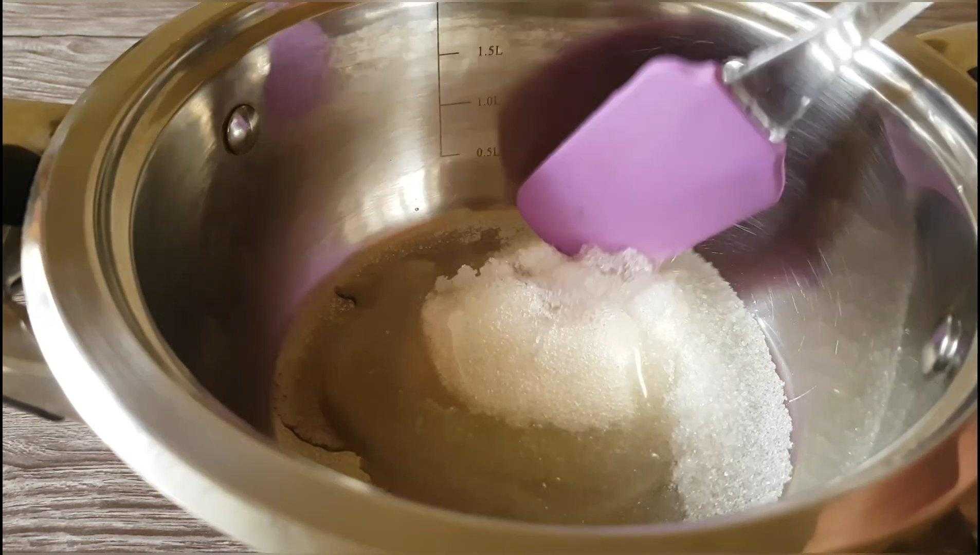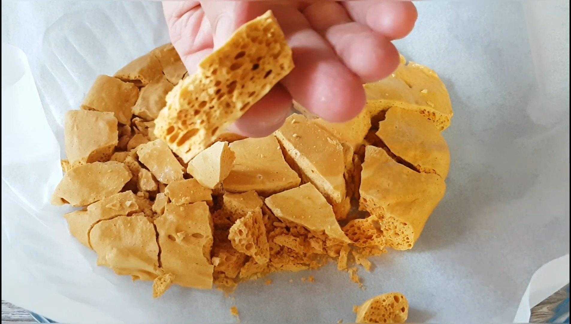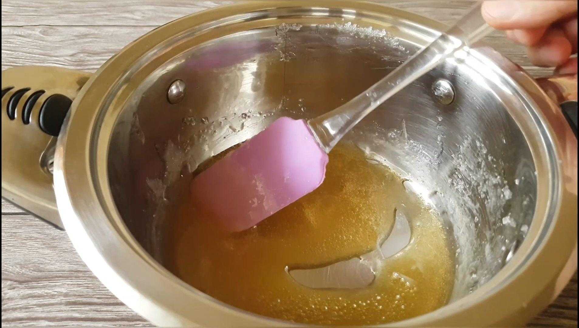 Как же приготовить «Сахарную соту»? Чтобы получить такую конфету, необходимо разогреть на среднем огне кастрюлю и насыпать в неё полстакана сахара, равномерно распределив его по дну. Как только сахар начнёт растворяться, нужно убавить огонь и хорошо перемешать образовавшуюся жидкость, а когда она приобретёт светло-золотой оттенок мёда — убрать её с плиты и добавить 1/8 чайной ложки столовой соды.