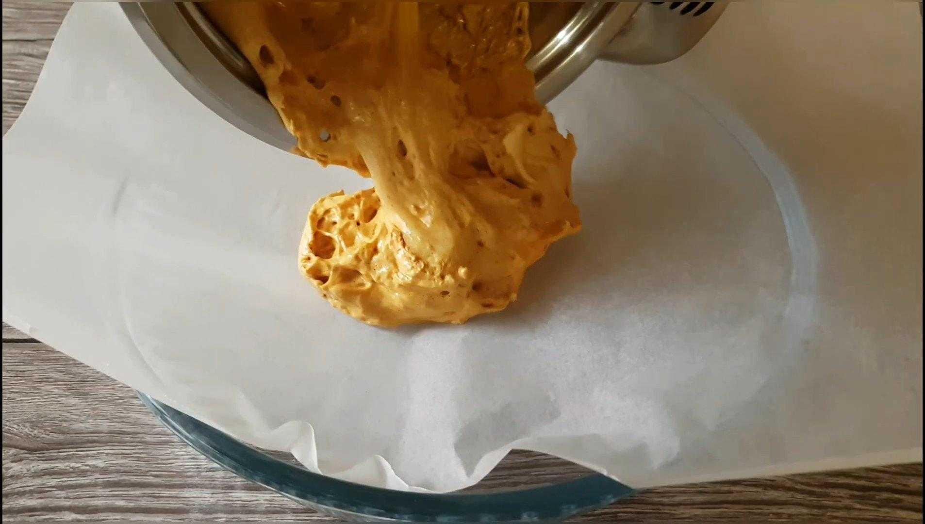 - На дно формы постелите пергамент, имеющий силиконовое напыление.