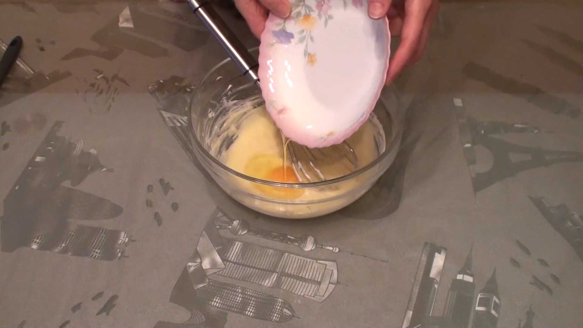Яйца с сахаром взбейте в глубокой миске, до полного растворения песка.