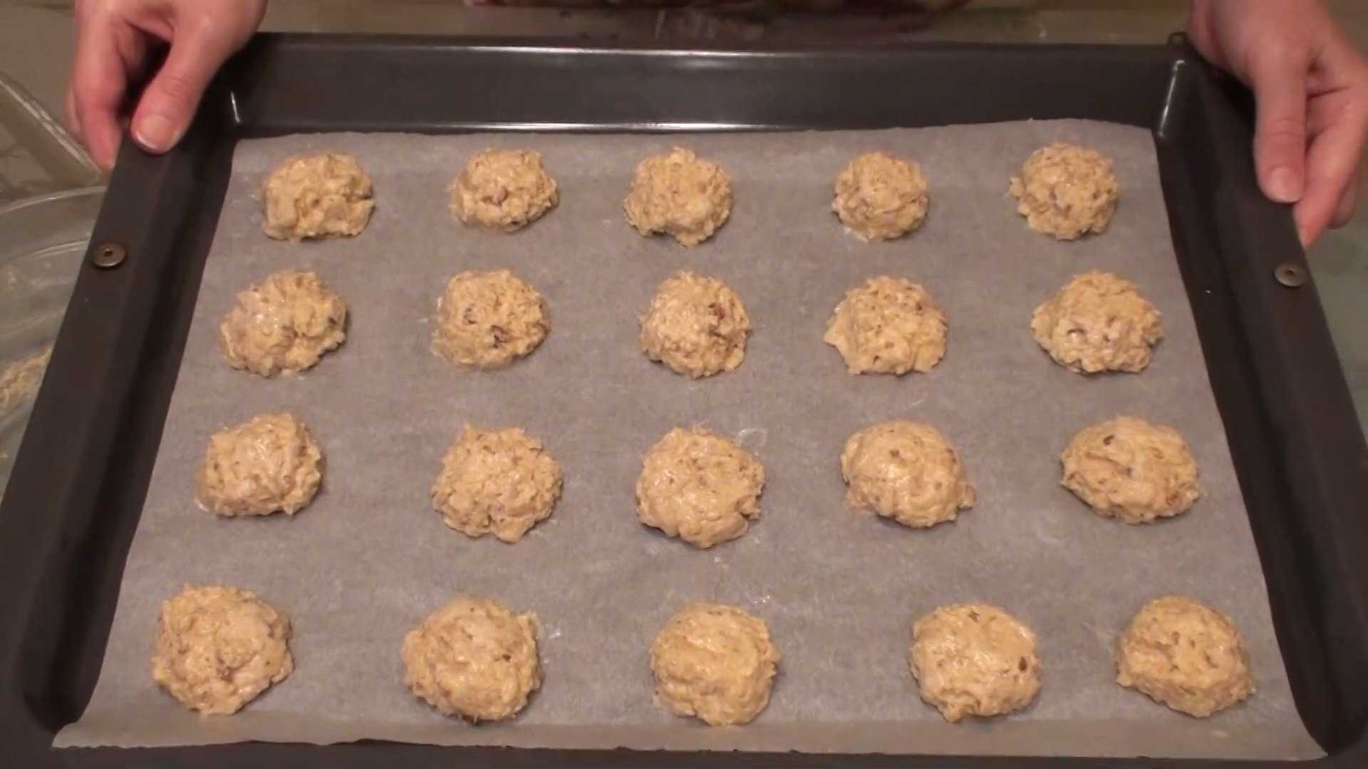 Размещаем полученные печенья на застеленном пергаментной бумагой противне и ставим в предварительно подогретый до 185 градусов духовой шкаф примерно на пятнадцать минут или до золотистости.