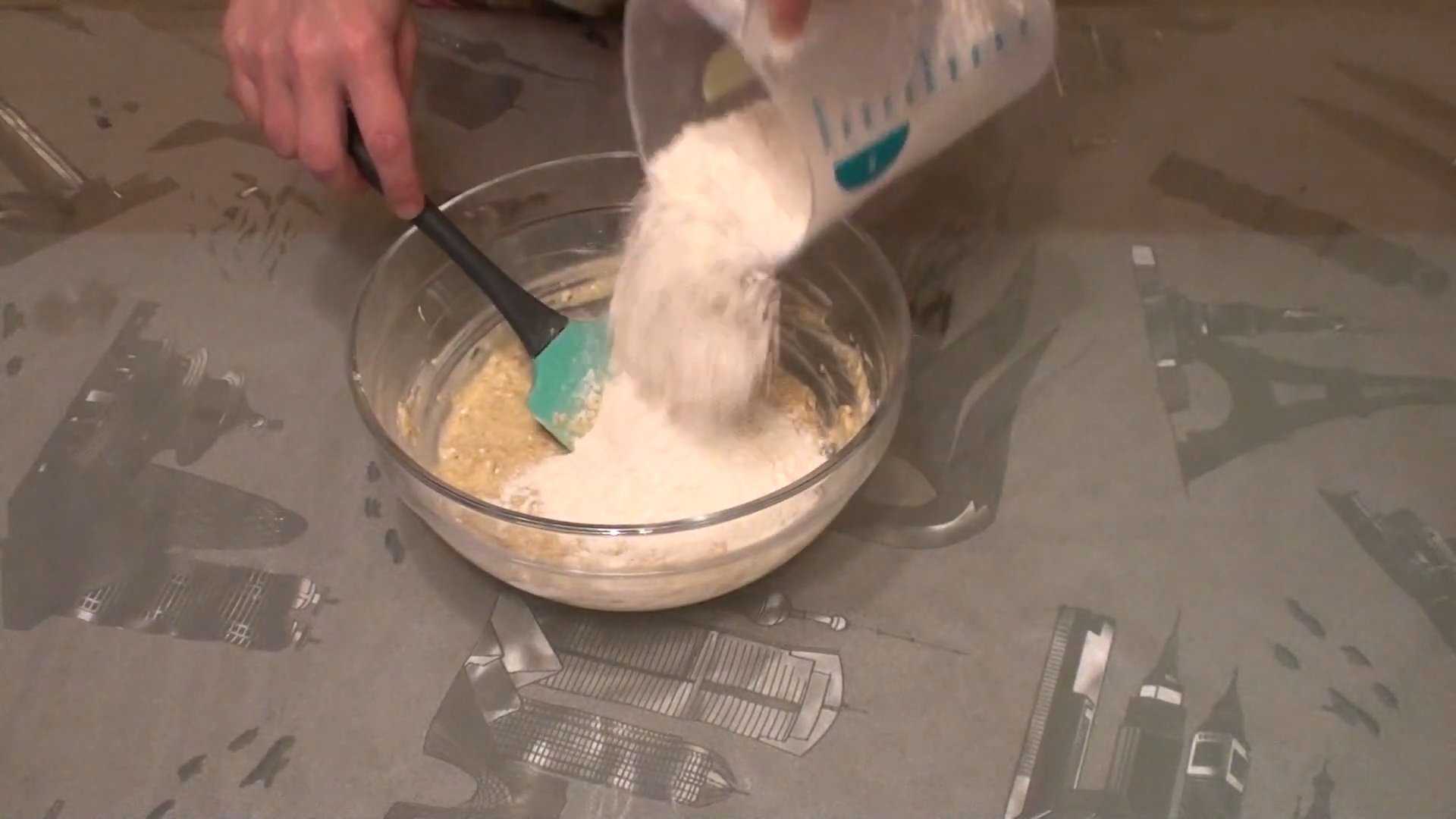 - Муку перетереть сквозь ситечко, исключая попадания в состав соринок и комков. Вносить небольшими частями.