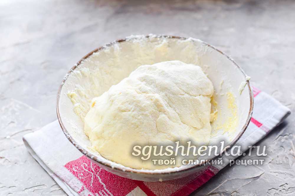 Приготовим вкусное тесто в этом блюде для выпечки на сметане. Оно получается такое не такое хрусткое как песочное, но нежно и мягкое. Замесить его проще простого, а потом сделаем несколько манипуляций с начинкой.